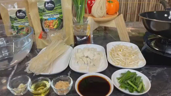 Unser Set enthält alle wichtigen Zutaten für ein authentisches Geschmackserlebnis: aromatische Pad-Thai-Sauce, Reisnudeln sowie ausgewählte Gewürze und Toppings. Einfach frisches Gemüse, Tofu oder Fleisch hinzufügen, kurz anbraten – und in wenigen Minuten steht ein originalgetreues Pad Thai auf dem Tisch.